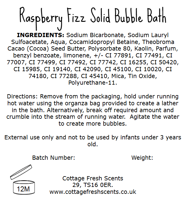 Due to the handmade nature of the solid bubble bath, the shape and appearance may vary between batches.